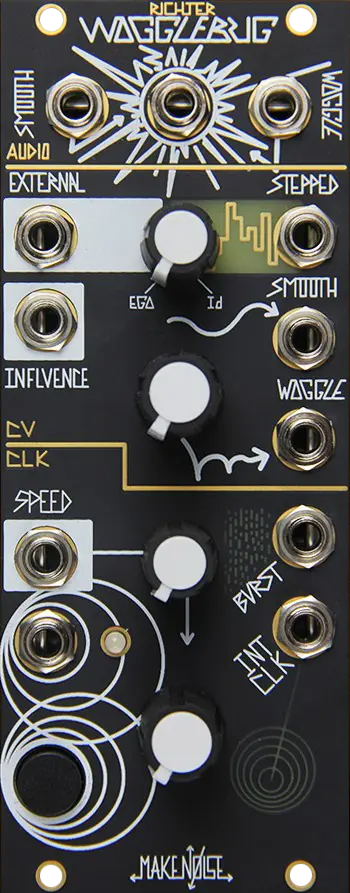 The WoggleBug music synthesizer module is a random voltage generator, originally designed by Grant Richter of Wiard Synthesizers. It is a continuation of the “smooth” and “stepped” fluctuating random voltage sources pioneered by Don Buchla within the Model 265 “Source of Uncertainty,” expanding it to include the other-worldly Woggle CVs (stepped voltages with decaying sinusoids edges). The Wogglebug is a very musical random voltage generator where it is possible to synchronize all random signal to a Master Clock. Guaranteed to unleash your synthesizer’s ID MONSTER!