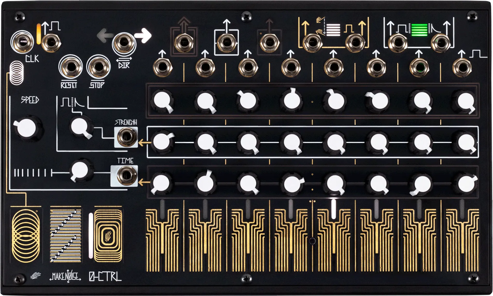The Make Noise 0-CTRL is a patchable, clockable controller and step sequencer for voltage controlled synthesizer systems. Designed to be patch pals with the 0-Coast, it is a tabletop device whose inputs and outputs follow Eurorack standards, making it also a great partner for a modular system or another patchable tabletop synth.